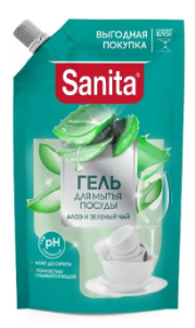 Гель для мытья посуды Sanita Алоэ и зеленый чай, 900г
